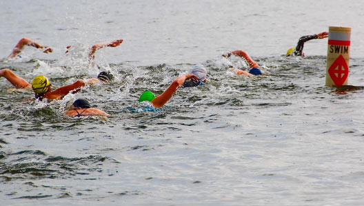Athletes swim throughout Patterson Lake, Round Lake, Island Lake, Watson Lake and Halfmoon Lake where the water is refreshingly clear and warm (above 75°F) and where two aid stations are positioned along the course.
