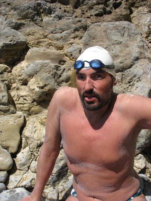 In addition to his 26 hour 50 minute Golfo de Vizcaya swim back in 2009, the Spaniard continues to swim around the world: Catalina Channel, Manhattan Island Marathon Swim, and the Strait of Gibraltar in charity swims on behalf of Augie’s Quest.