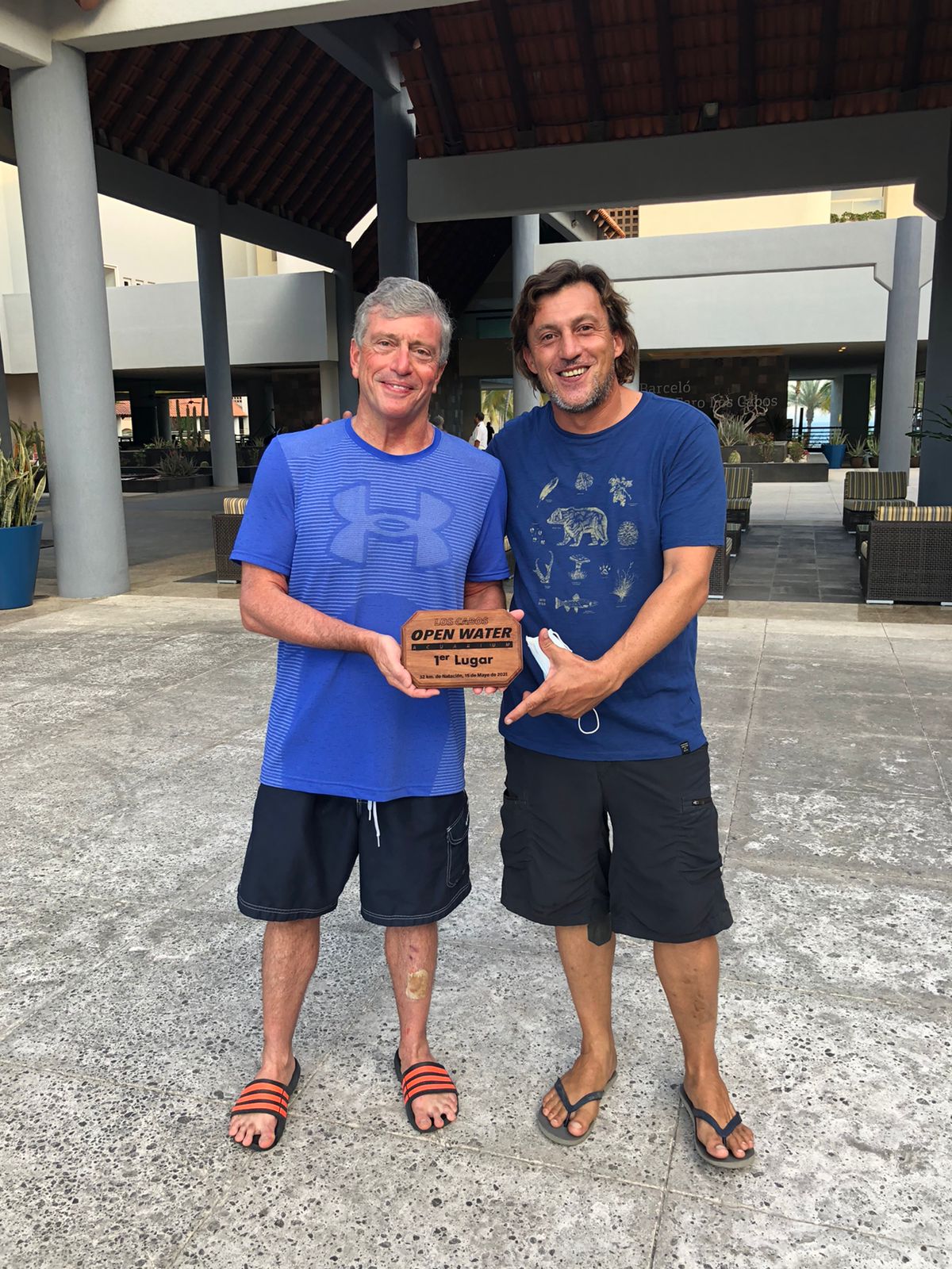 Jaime Lomelin and Diego Rivas at completion of 36 km marathon swim