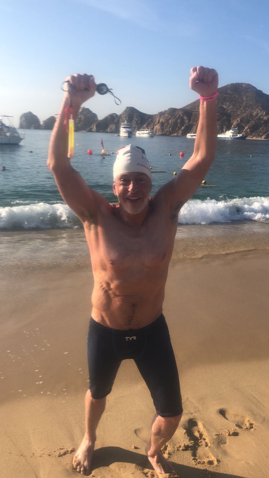 Jaime Lomelin at finish of Los Cabo Open Water Aquarium swim