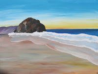 “Morro Bay” (acrylic on canvas) is a painting of one of my favorite places to visit. Just sitting down by the water has a healing effect; the peaceful sound of the waves and the calm coastal breeze are some of the best relaxants anyone could have.