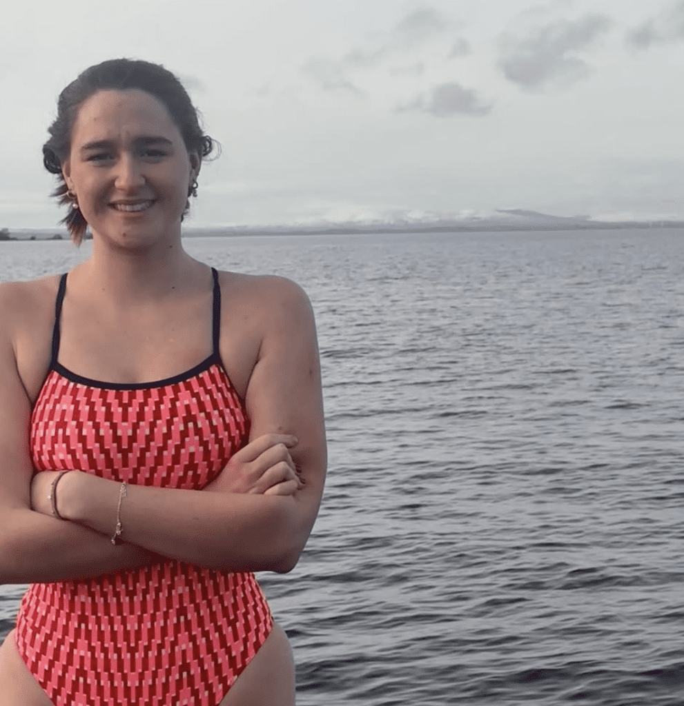 49-year-old Scottish marathon swimmer James Leitch and 18-year-old Irish Jessika Robson (@jessika_r06, shown above) both won the 500m and 1000m freestyle in the 5.85°C water and 11.0°C air – and are both headed towards Molveno.