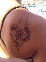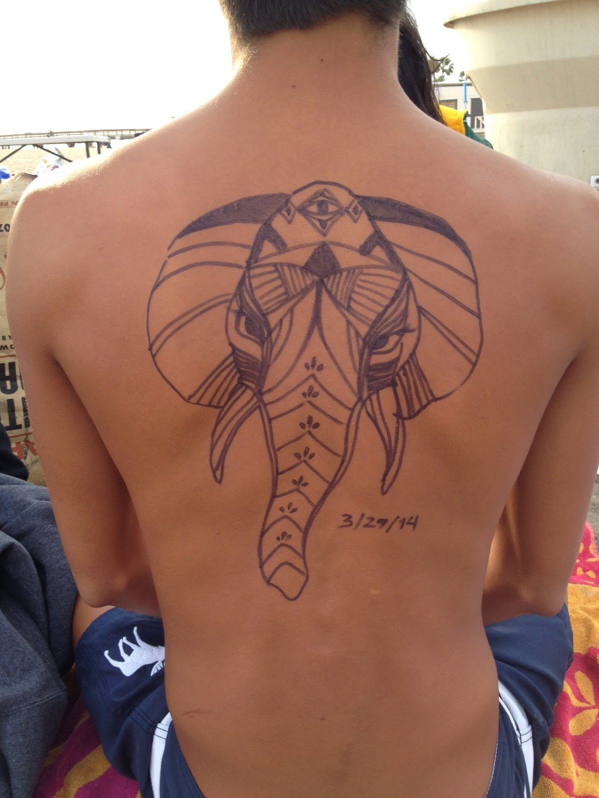 I usually draw random things that symbolize something for each swimmer,” she explains. “For a teammate who swims butterfly, I draw a butterfly. But I have also drawn a gypsy on the boys and done many tribal tattoos.”