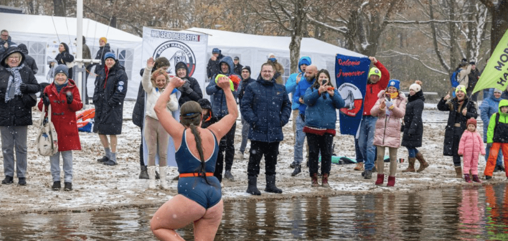 Race director and Ice Miler Florian Battermann hosted and organized the Silbersee Ice-Cup in Silbersee Langenhagen in northern Germany last weekend. The water temperature was 4.80°C with an air temperature of 1.00°C, prime conditions for the kick-off to the International Ice Swimming Association 2023-2024 season.