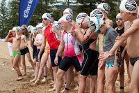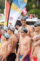 With stars like Olympic legends Jon Konrads (at the start) and Susie O’Neill (at the finish), race director Brendan Capell summed up the event, “Ocean swimming is about accepting the challenge of the elements. The swim was a fairly big challenge. To see the determination and camaraderie between the competitors is what open water swimming is all about. To see first timers in the anything-goes-section swim was great.”