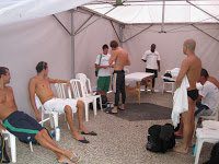 A separate and quiet ready room for the athletes and a pre-race and post-race massage.