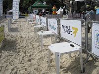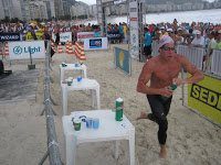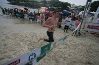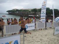 Athletes ran a short distance on beach in front of fans and TV cameras.
