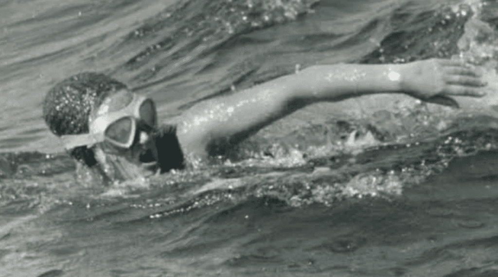 The first woman who completed a 19.7 km crossing of the Rottnest Channel Swim in Western Australia in 1969 in 9 hours 35 minutes [shown above in the photo on left] starts off the podcast with a bang.”Yes it was unfair, but I grew up when women and girls were treated as lesser beings. It was just something that you accept and, in a way, that was an incredible advantage.”
