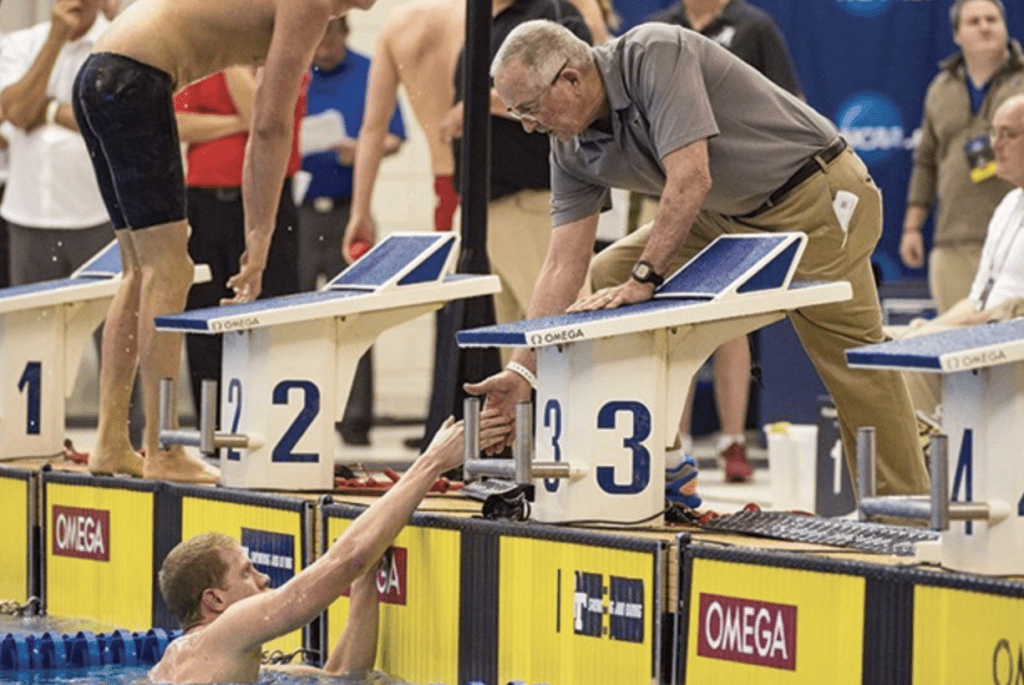 He was coached in college by Eddie Reese of the University of Texas who is one of the most successful swimming coaches in the United States.