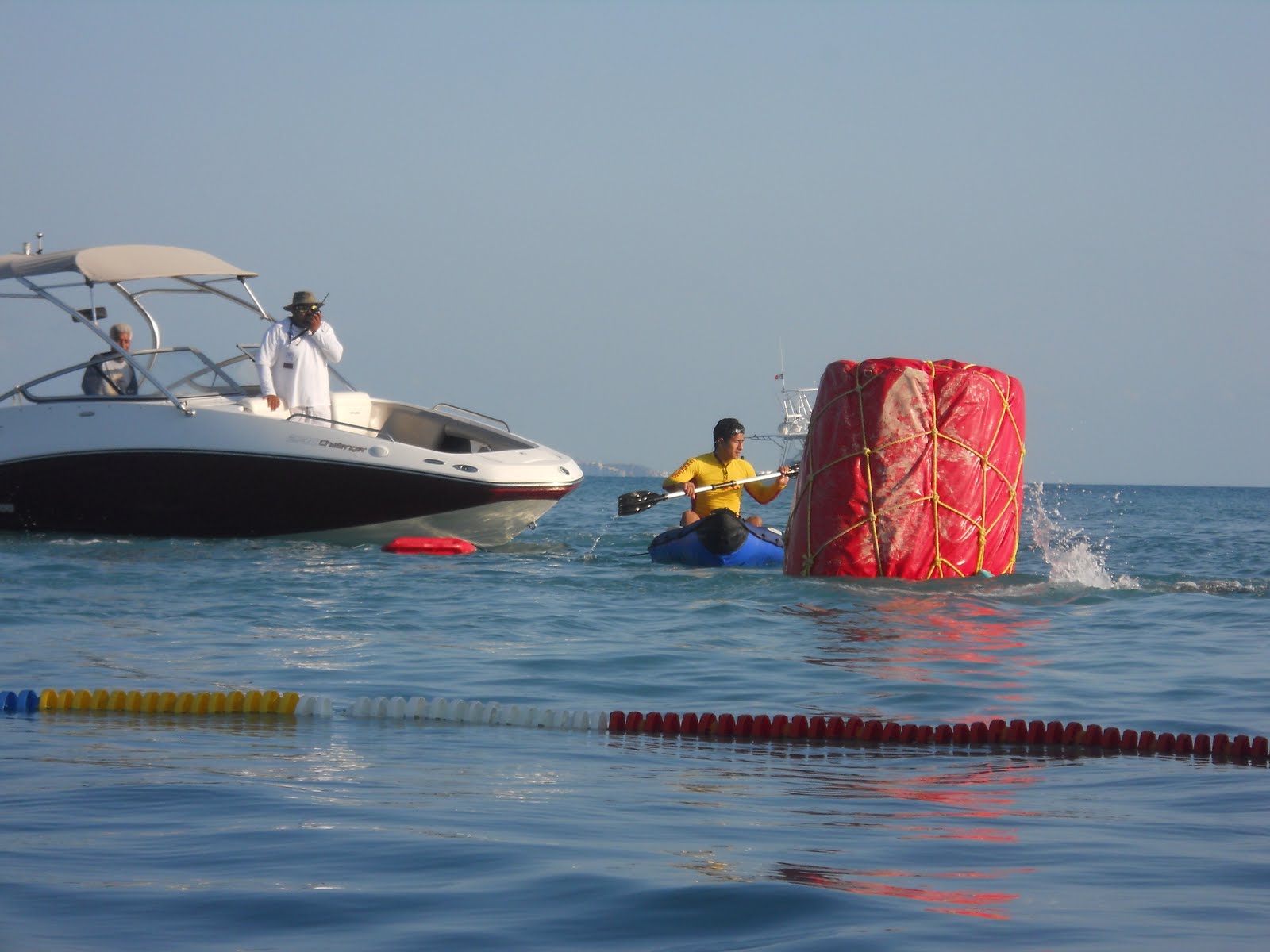 They have Swim Angels (trained lifeguards) near the start and kayakers have standard lifesaving safety buoys as well as a double ring of safety boats surrounding the course and providing a redundancy of safety personnel enveloping the race course.