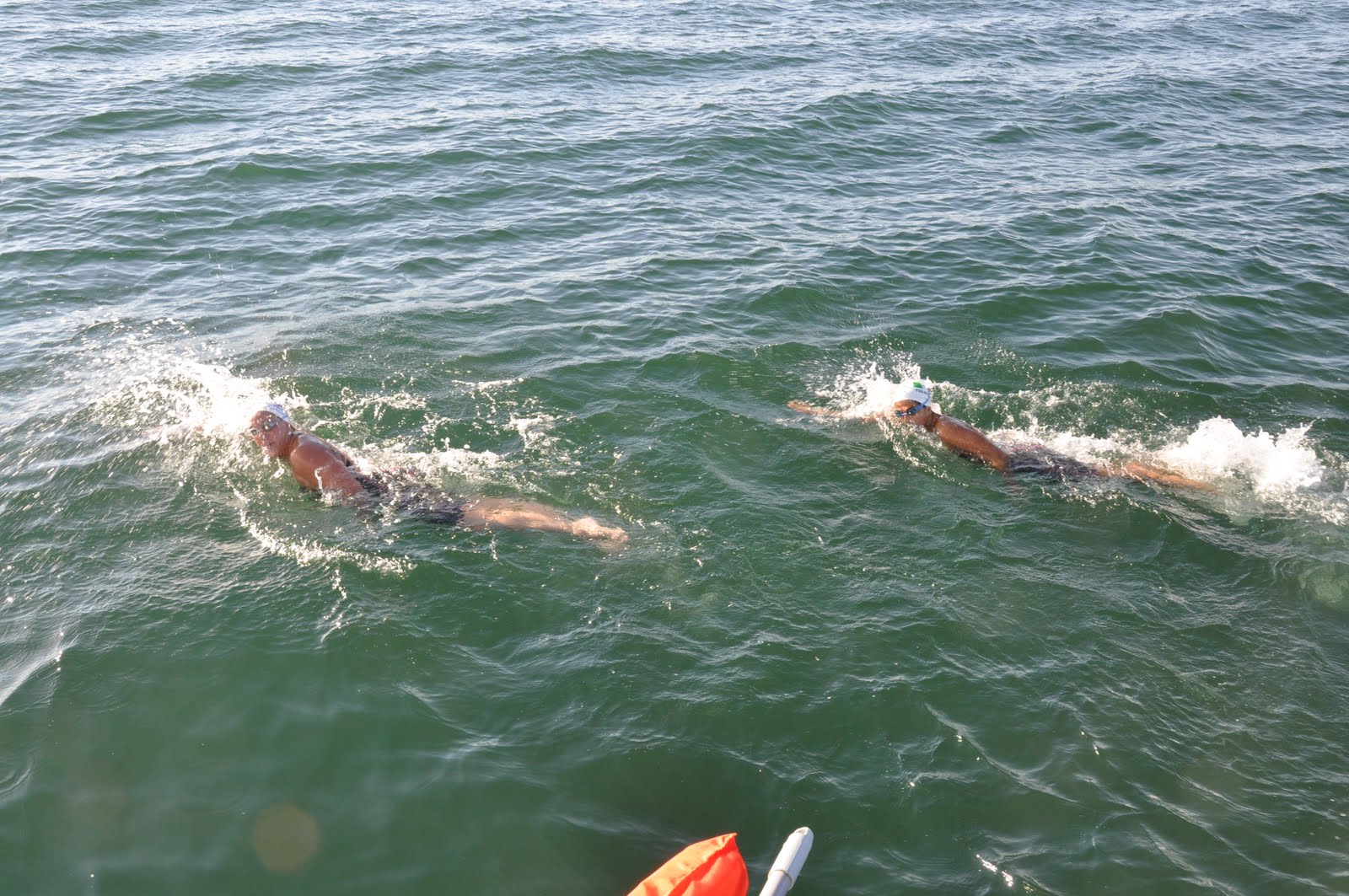 The Mexican American Unity Swim started today at 6 am. The 6-person team is luxuriously escorted by a beautiful houseboat.