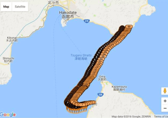The Tsugaru Channel with only 19.5 km separating Honshu island from Hokkaido is a deceptively difficult strait to cross with its relentless winds, notorious currents and unpredictable eddies. “I was in shock as I had no idea how bad the current was,” said Fry.