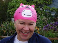 She is an extraordinarily cheerful and dedicated open water swimmer from Laguna Beach, California who volunteers hundreds of hours each season as an Observer with the Catalina Channel Swimming Federation and the Santa Barbara Channel Swimming Federation<.