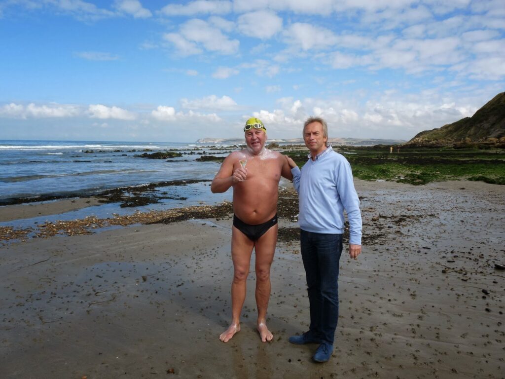 As the Brighton Iceberger Nick Owen was swimming into shore at the end of his 11 hour 36 minute English Channel crossing, the owner of La Sirene restaurant near the lighthouse at Cap Gris Nez came down as he saw the Australian approach the shore. “The first thing he did upon exciting the water was to have a glass of French Champagne; it was a magnificent way to finish the English Channel.