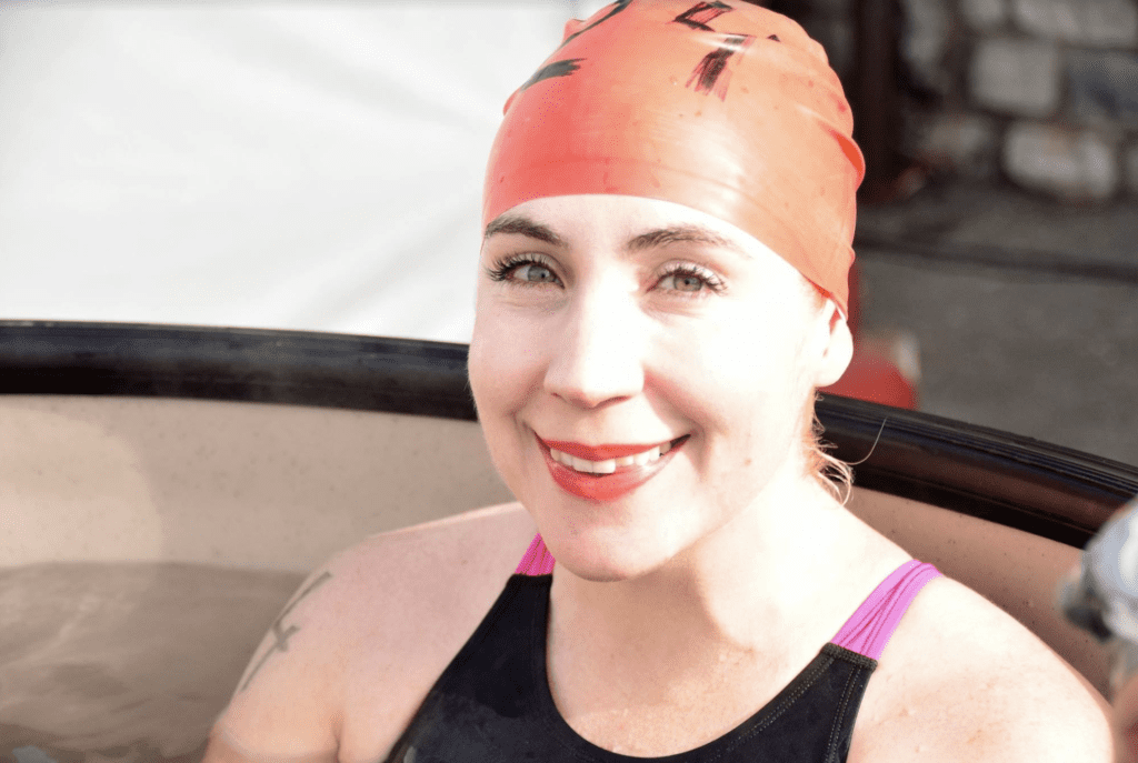 Similar to marathon and channel swimmers, the vast majority of ice swimmers and winter swimmers do not use makeup. But the renowned marathon swimmer Jaimie Monahan explains, “I don’t wear makeup on marathon swims, but I cover my whole face and body in 40% zinc cream for protection from the sun. It is a ritual to apply and helps me mentally prepare for very long swims. Even after 24+ hours, most of the zinc still remains which is important for me as my skin is very fair and needs protection from the sun.