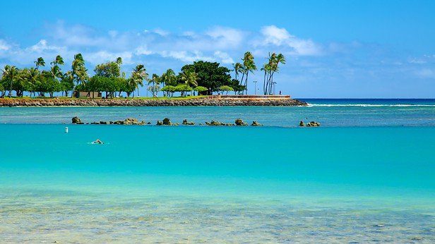 Photo shows Ala Moana Beach Park, a popular ocean swimming spot near the spill.