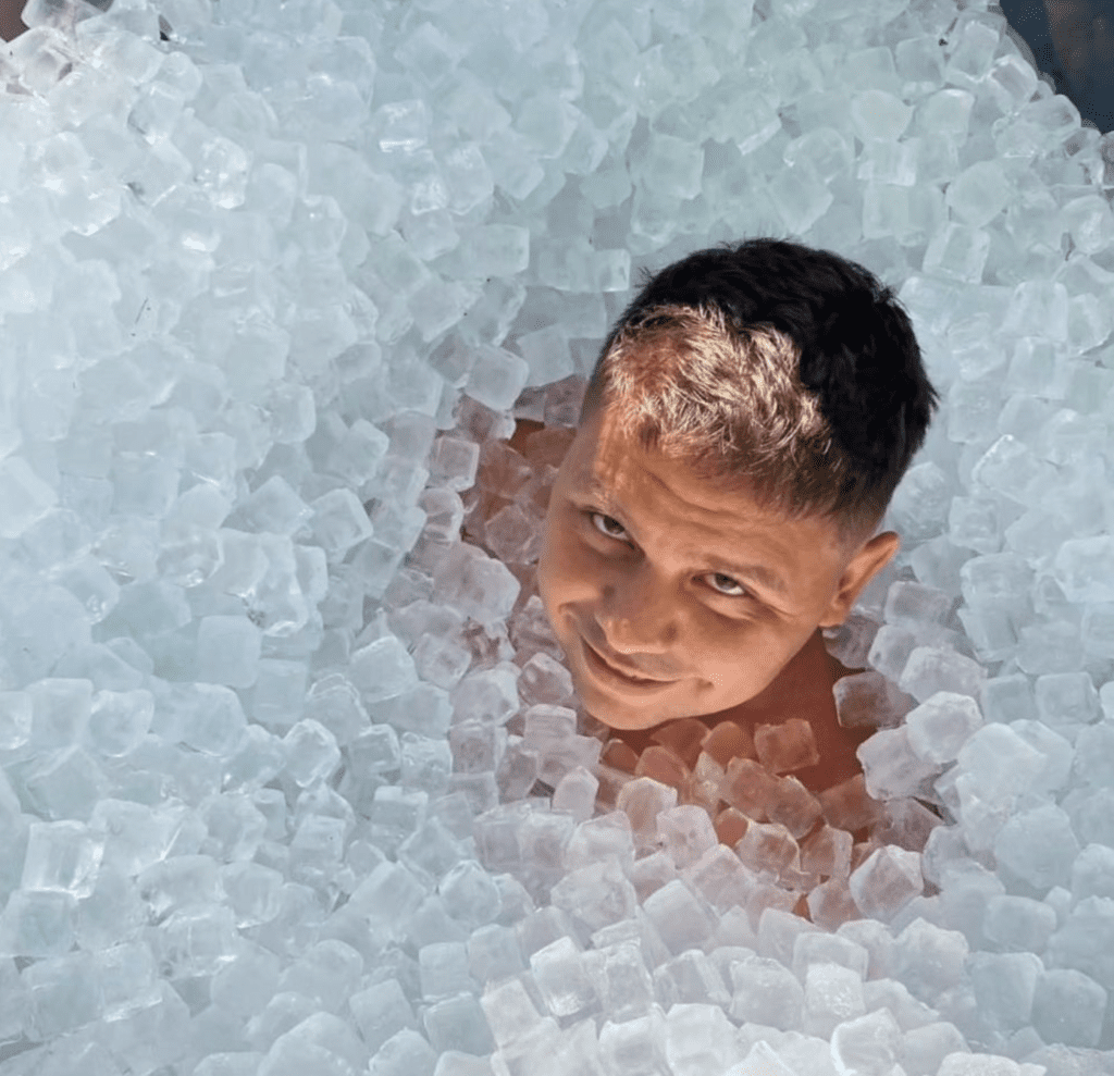 31-year-old Krzysztof Gajewski of Poland [shown above], 32-year-old Krzysztof Kubiak of Poland, 42-year-old Paul Georgescu of Romania (@oceanpaulg), 45-year-old Hamza Bakircioglu of Turkey (@hamza.bakircioglu, shown below), 20-year-old Jack Boyle of Ireland, and 36-year-old Carmel Collins of Ireland are the only swimmers to have completed a Marathon Ice Swim.