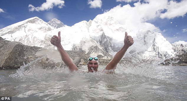 A video interview of Lewis Pugh after his Swim on Mt Everest – Swim for Peace was broadcast on Fox News and many other media outlets around the world. You can see Lewis swimming breaststroke as he balanced his high-altitude swim (5300 meters or 17000+ feet) with the altitude here: