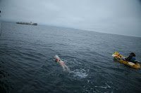 In an attempt to catch the usually tranquil waters of the early morning, the statuesque swimmer started near midnight. “The minute I jumped in the water I felt special. The water washed out any bad thought from my mind.”