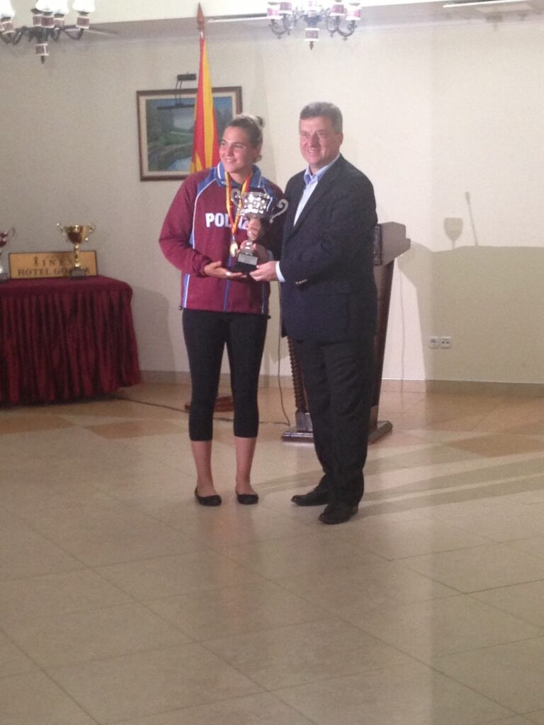 But Martina Grimaldi who won this weekend’s 30 km Ohrid Lake Swimming Marathon by only a few tenths of a second over Russia’s Olga Kozydub was able to meet with Dr. Gjorge Ivanov, the President of the Republic of Macedonia, the head of state of the Republic of Macedonia, at the awards ceremony.