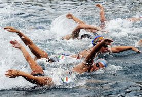Italian world champion and Olympic medalist Martina Grimaldi out-dueled and out-touched her younger Russian rival Olga Kozydub at the 30 km Ohrid Lake Swimming Marathon in the former Yugoslav Republic of Macedonia this morning.