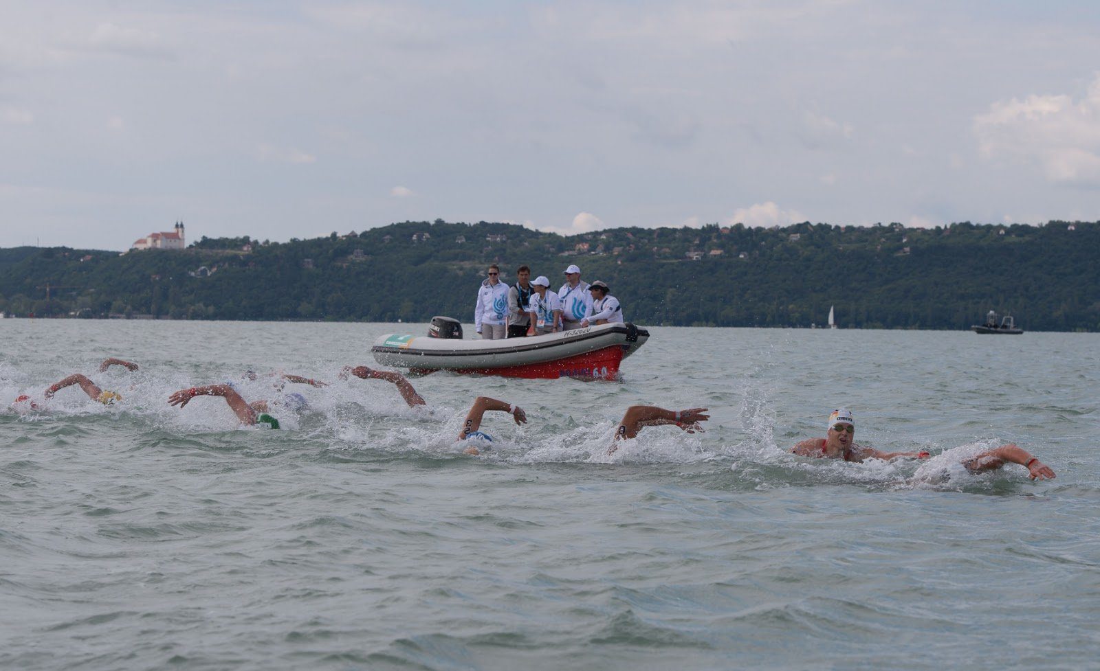 Two photos above are of the 5 km race at the 17th FINA World Championships recently held in July; the masters swimmers will compete in same location in Lake Balaton as the elite younger competitors used in July.