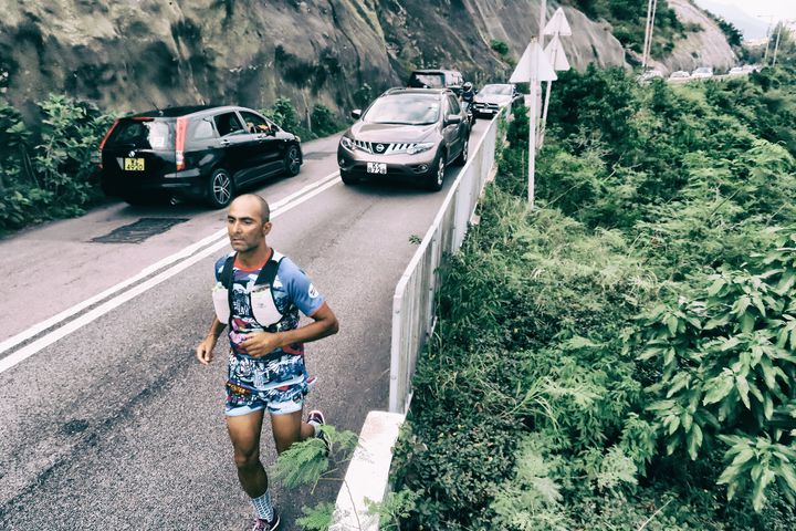 The 45 km swim circumnavigation of Hong Kong Island started and ended at Sai Wan Swimming Shed in Kennedy Town. It took significantly longer than he expected. He took a 1 hour 8 minute 39 second transition rest and then hopped on his bicycle to begin the 215 km circumnavigation of Hong Kong and the New Territories. After his 9 hour 17 minute 18 second bike leg was over, he took a 15 hour 3 minute 51 second transition rest before starting on his second bike leg that took 6 hours 55 minutes 25 seconds. After a 24 minute 12 second transition, he then started running 100 km. It took him 19 hours 22 minutes 6 seconds to run from Sai Kung to Tsim Sha Tsui for his third and final circumnavigation of Hong Kong Island.
