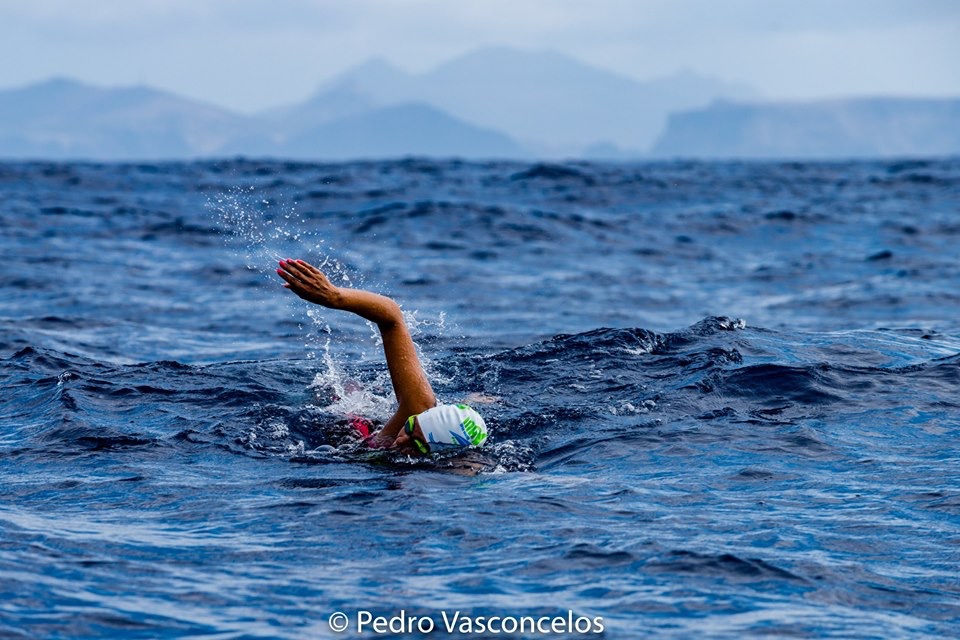 On September 4th, she began swimming at 7:10 am from the Ilhéu da Cal. “My goal was to do it before nightfall because there was a time limit of 14 hours. I fed every 40 minutes with two support vessels carrying a team of 10 people with my husband João Duarte, Dr. Rubina Lara, photographer Pedro Vasconcelos, boat captain Adelino Ferreira, Lieutenant Director Paulo Falé, FINA official Dalila Lira, ANM Madeira Swimming Association representative Humberto Goncalves, and nurse Orlando Fernandes.”