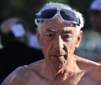 Read is shown above at the 16 km Faros Maratón professional marathon swim in Croatia in 2015. One of his latest marathon swims was the 24.5 km Toroneos Gulf Marathon at the age of 76 where he placed 13th out of 20 finishers.