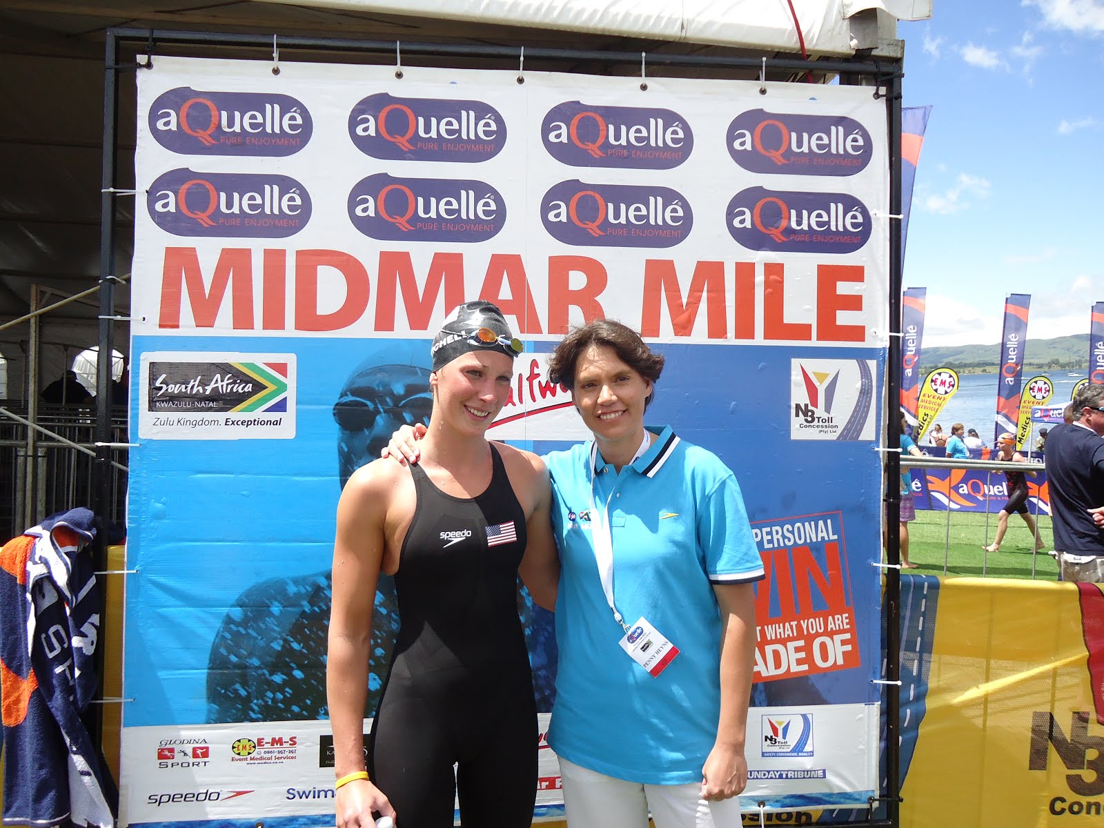 Photo above shows American Ashley Twichell and Olympic gold medalist Penny Heyns of South Africa at the 2011 Midmar Mile.