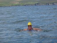 Viewed from high above, Moore’s wake is impressive in the traquility of Pedlar’s Lake (Loch an Pheidlar). Renowned for its rugged beauty and waterfall, Moore swims in the lake throughout the winter as part of her extreme training.