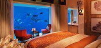 For open water swimmers with sufficient means, there may not be more interesting hotel rooms than the underwater suite rooms at the Atlantis, The Palm in Dubai called Neptune and Poseidon.