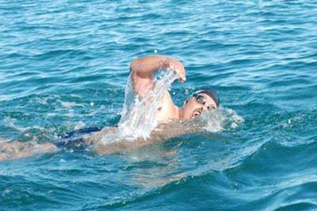 Escorted by Carol Breiter and a local support crew, Nejib Belhedi of Tunisia completed a south-to-north 4 km solo swim along the International Date Line yesterday near Little Diomede Island in the Bering Strait after being delayed by weather conditions.
