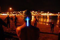Guided by kayaks, the swimmers were aided by glow sticks (see below) in the gorgeous waters of the Canary Islands.