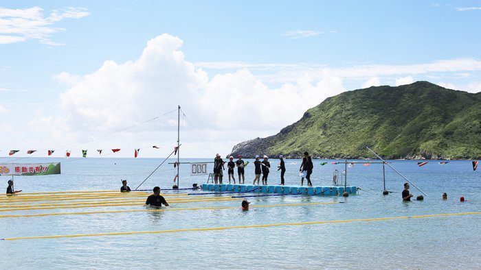 One such island, Tonakijima Island (渡名喜島) with a population of 502 people, 2 hours away from the main island of Okinawa, holds in annual summer swimming festival on Nishihama Beach. The community sets up a 25 meter course complete with lane lines and start/finish pontoons where the elementary school children can get their first taste of open water swimming in relatively shallow water. Starting with 400m and 800m swims, the young children gradually graduate to swimming without lane lines in the open ocean.