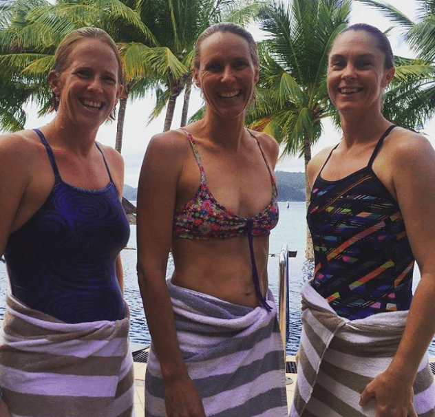Nicola Logan is shown on left in the photo above with Australian Olympian Susie O’Neill (middle) at the 2015 Whitehaven Beach Ocean Swim.
