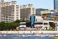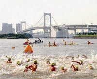 The short bay swim was held in Odaiba Marine Park near the heart of Tokyo where the proposed Olympic marathon swim and triathlon events will be held.