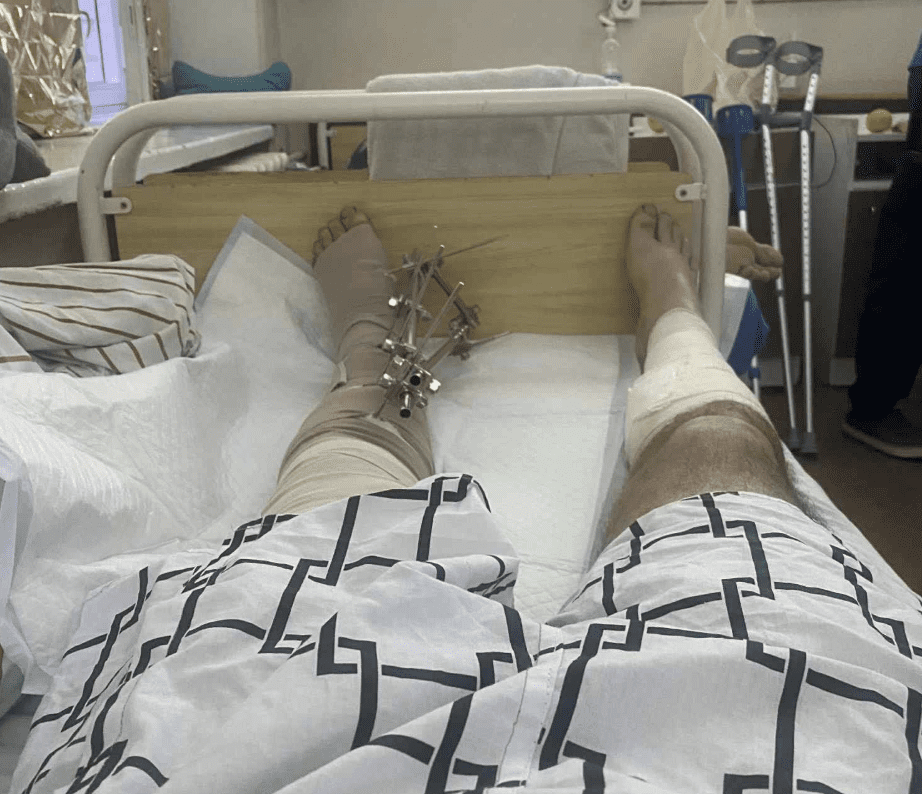 Sergiy Fesenko reported, “A drone dropped a grenade right under his leg. It happened during their attempt to reclaim some of the lost trench positions in front line.”