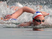 8. Angela Maurer of GER (2:01:15) was barely edged out of a bronze medal in the 2008 Beijing Olympics. The German mother and police officer has the guts and game to rectify the situation in London. The 35-year-old Wunderkind will make her presence felt throughout the race, around the turn buoys, and will be near the top at the end. While she lost out on an Olympic bronze by only a stroke four years ago, the 25 km world champion is most definitely ready to seize the opportunity in the Serpentine.