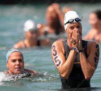 6. Poliana Okimoto of BRA (2:01:13) is living her dream. Cautious at first when she was introduced to marathon swimming, she has now taken to the oceans, rivers and lakes of the world. A slender marathon swimming champion, she just finished outside the money at the 2008 Beijing Olympics. Coached by her husband, she is friendly and personable onshore. But she transforms herself to a competitive endurance machine once she hits the open water.
