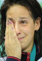 With the swim of her life and a calm under the potentially overwhelming pressure at the Olympics, Erika may be crying at the end of the race with tears of joy.