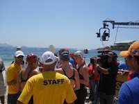 The cameras were placed on cranes (see above), up on scaffolding, in the water, under the water, on boats, from helicopters and perched on buildings in order to catch every surge and tactic used throughout the 10K race.