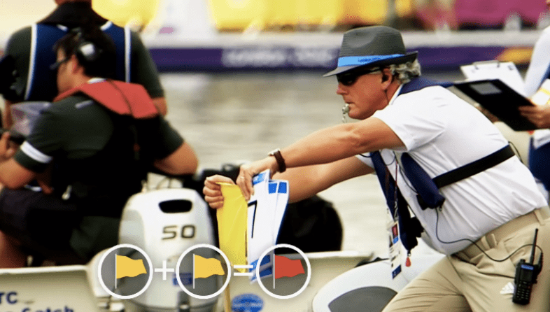 Sid Cassidy giving a yellow flag at the 2012 London Olympic 10K Marathon Swim