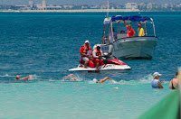 In Cancún, the top men included Olympic gold medal favorites Thomas Lurz of Germany and Spyridon Gianniotis of Greece. Both Lurz and Giannotis are supremely fit, savvy veterans of the world’s waterways, and yet they were surrounded in a tightly wound pack, including…Olympic 1500m gold medalist Ous Mellouli from Tunisia, English Channel record holder Petar Stoychev and a host of other Olympians from around the world…Julien Sauvage of France, Brian Ryckeman of Belgium, Andreas Waschburger of Germany, Igor Snitko and Igor Chervynskiy of Ukraine, Luis Escobar of Mexico, Csaba Gercsak of Hungary, and Rostislav Vitek of the Czech Republic.