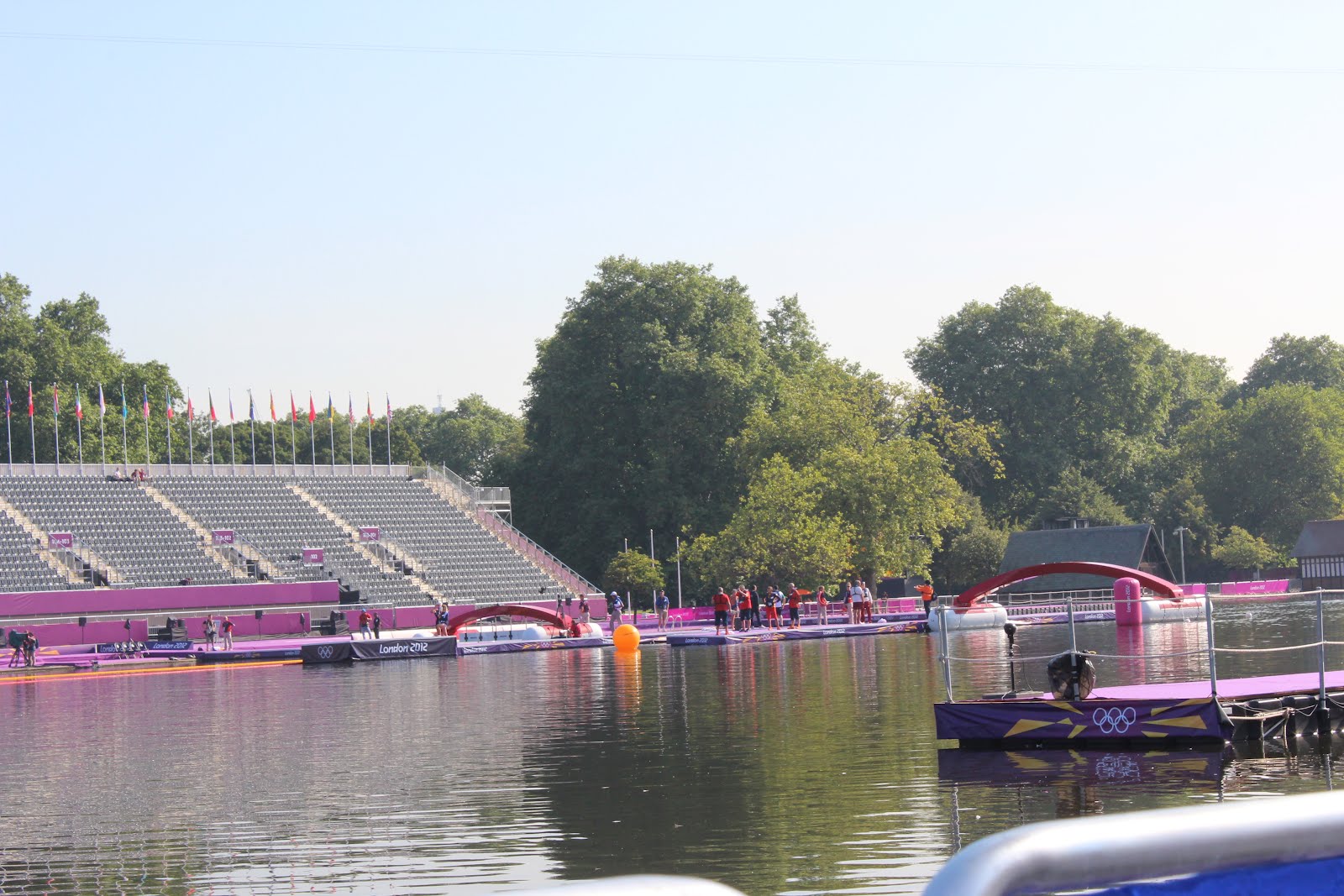 The finish pad has an electronic timing and high-speed cameras to measure and record the time and placing of the athletes. The Open Water Gate sits upon two massive floats, another custom-designed product and innovative service from Omega Timing.