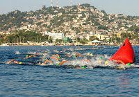 For the 5K race, the minimum pace required is 2:24 per 100 meters in order to finish under the 2-hour time limit. The race is quite a spectacular event with Mexico’s elite swimmers and competitive masters swimmers racing along the warm waters between a wide range of safety watercraft from yachts to Jetskis and along a straight point-to-point line of colored buoys stretching the entire length of Acapulco Bay.