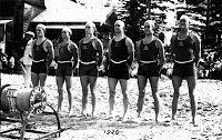 Other examples include the ocean swims in Bondi Beach and the Manly Life Saving Club (old photo shown on left) where the safety personnel has officially saved over 10,000 lives. No individual has drowned at Manly Beach while its Club members have been on duty. Currently, the Manly lifeguards save about 200 lives per year.
