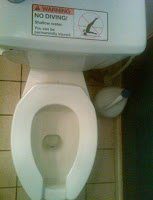 This warning label on a hotel toilet reminds us that sometimes open water swimmers will try almost anything and go almost anywhere to get a swim in.