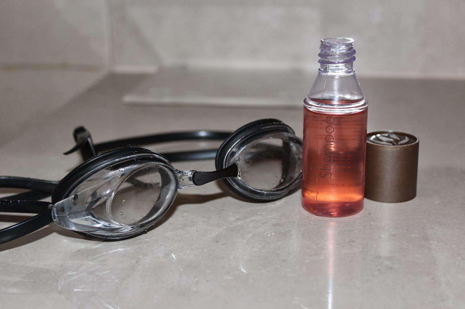 Just a few sprinkles of the hotel shampoo – or any mild shampoo – is a great way to clear your goggles.