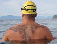 Watch an NBA game and it is rare to find a player without tattoos. But most open water swimmers leave their skin unadorned with the exception of sunscreen, Vaseline and lanolin.